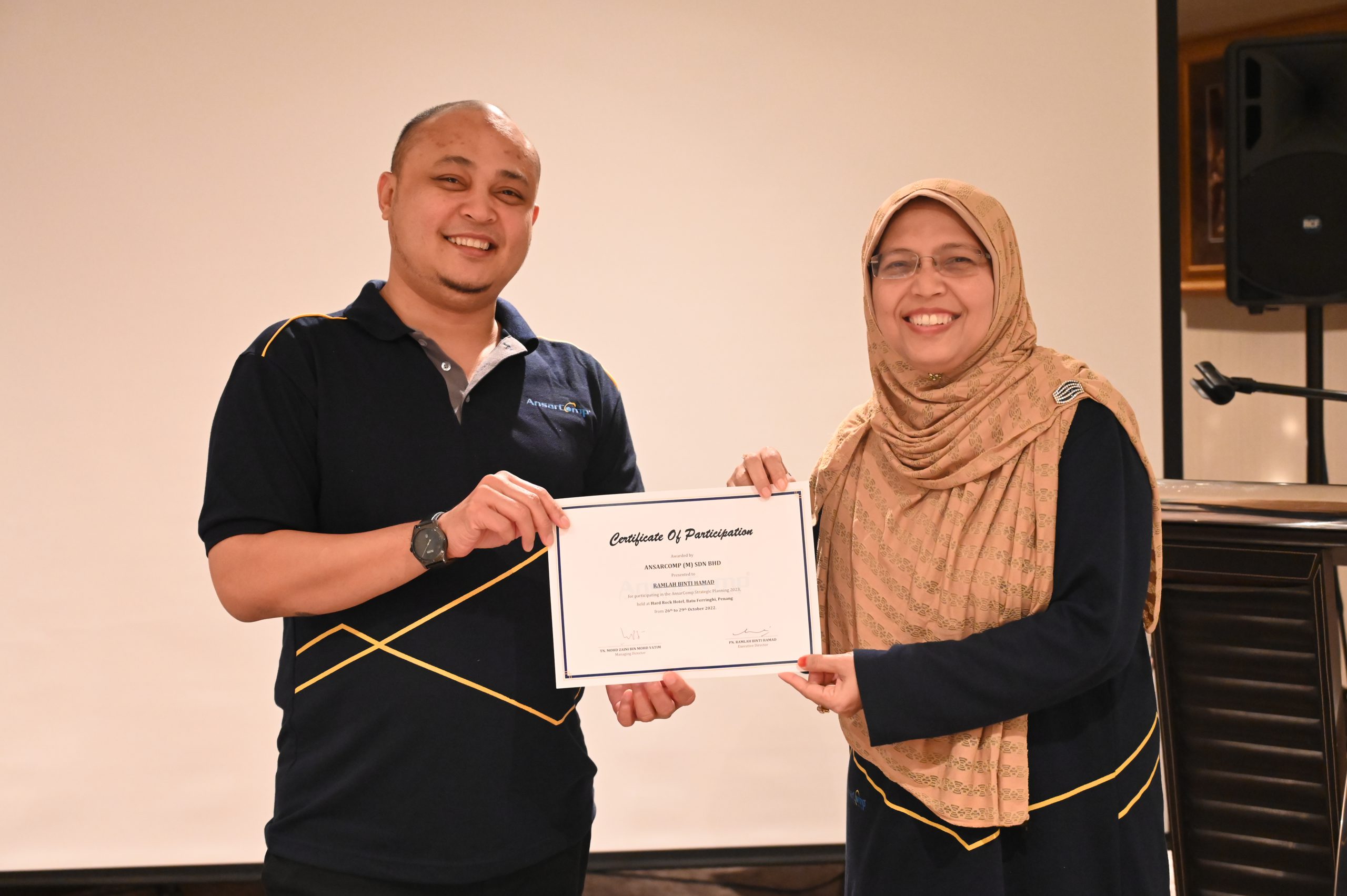 October 31, 2022 – Recently, the top management of AnsarComp organized a special programme for the leaders to undergo strategic planning training. The program, which lasted for 4 days, and 3 nights was led by Coach Rafi and attended by 17 participants. The training venue was at the Hard Rock Hotel, Batu Ferringhi, Penang.